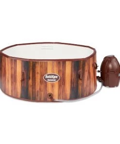 The Coleman SaluSpa Spa is an inflatable hot tub that seats 4 people and is completely portable so you can take it with you on your vacations or relax at home.It has massage jets and a cushioned floor, making it easy for you to unwind. The hot tub inflates within minutes and the rapid heating system quickly heats the water up to a soothing 104 degrees with 114 surrounding air jets. The hot temperature is perfect for soothing sore muscles or lounging after a long day and the digital control panel lets you adjust the temperature without having to get out of the tub.The walls are made of durable TriTech material and have sturdy I Beam construction that allows you to sit on the sides of the spa thanks to the superior structural stability. There are 2 handles built into the sides for easy transportation. This package also includes a chemical floater to keep your spa clean, a twin pack of filter cartridges, and an inflatable cover to keep your water warm when you’re not using it.Enjoy the luxury of a hot tub in your house with the Coleman SaluSpa Spa.