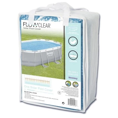 Pool maintenance can be a tiresome and sometimes difficult process, so adding convenience where you can is key to having more time to splash around in the water. Utilize the Bestway Flowclear Polyethylene Solar Swimming Pool Cover to provide yourself with a clean and warm pool this season.Measuring 14 feet by 8 feet and 2 inches, this oval-shaped cover is ideal for above-ground and in-ground swimming pools, swimming pools not included. This versatile cover utilizes solar energy to warm pool water and prevent heat from escaping for ideal warmth while swimming. Not only does the cover help with warmth, but it also helps prevent water evaporation that may be caused by dry winds and chlorine loss that may be caused by UV rays.The protective layer helps minimize the amount of debris and dirt that collects on the pool’s surface so that your pool stays cleaner and helps with everyday pool cleaning. Constructed from durable polyethylene material that helps protect and warm your pool the Bestway Flowclear Solar Swimming Pool Cover is the ideal addition to your pool equipment.