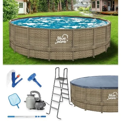 Beat the boredom of long, summer days with the Dark Cocoa Wicker Frame Pool. Constructed of heavy-gauge PVC and reinforced with an inner layer of polyester fabric, this above-ground pool is built to provide years of enjoyment for the whole family. Assembly is quick and easy with its T-frame system – simply snap the frame together and it’s ready for water. Designed with a distinctive wicker-patterned wall, this above-ground pool compliments any deck or patio. Includes an EZ Clean 200 filtration system, CottonTailâ„¢ filter media, an A-frame ladder, pool cover, and maintenance kit. This stylish pool package will deliver hours of endless summer fun.