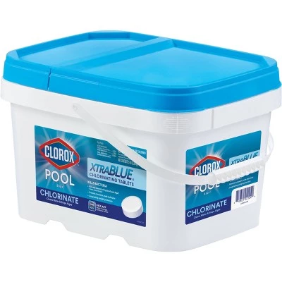 Clorox Pool & Spa XtraBlue 3-inch Chlorinating Tablets are multi-functional swimming pool chlorine tablets that kill harmful bacteria and unsightly algae. Each tablet dissolves slowly and contains a stabilizer for a long-lasting clean. The XtraBlue Formula protects your surfaces from scale and corrosion and has conditioners that make your swimming pool water feel silky smooth. Use weekly in skimmers, feeders, or floaters. Always apply chemicals per label directions. The best time to apply these pool tablets is when you test your water each week with the Clorox Pool app. Since it gives a personalized recommendation for your pool needs, there’s no guesswork involved. Simply enter your test results or scan a Multi-Use Smart Strip.