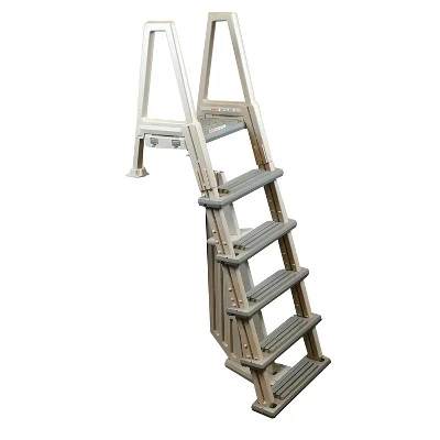 Confer 6000X Series Inpool ladder is a deluxe heavy duty in pool lader. The ladder features a an anti-entrapment barrier, has a flat treads for easier climbing and totally adjustable for deck heights from 48-54″. The Confer 6000X includes a deck platform, has white side rails with grey treads for high visibility. The Confer ladder made of strong, solid construction for years of use!