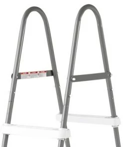 **Confer 6000X** Series Above Ground Pool ladder is a deluxe, heavy duty in pool ladder. It features an anti entrapment barrier, has flat treads for easier climbing and is totally adjustable for deck heights from 48″ 54″. The Confer 6000B includes a deck platform, white, side rails with grey treads for high visibility. The Confer ladder is made of strong, solid construction for years of use. 5″ x 18″ wideFlat treads for easier climbingIncludes deck platformProtective Ladder Mat Included!