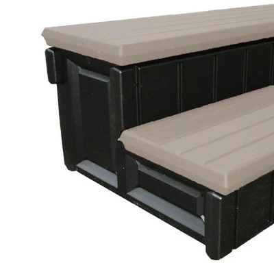 Get back to your hot tub happy place with the Leisure Accents 36-Inch Deluxe Patio Hot Tub Steps. As a home spa owner, the thought of sinking into the sweet heat of your hot tub likely relaxes you. When you’re about to dip into that soothing goodness, however, you need to take the first step. These elegant modern stairs allow you to safely get into that inviting water ASAP. When you’re about to hop into a hot tub, getting in is easier said than done. If you value safety and accessibility as much as your home spa, these sleek and simple stairs make entering your spa an easy feat. These stairs represent the last step to a finished hot tub and the first step which mark your entry. These stairs snap easily together by drilling the included screws. These hot tub steps’ warm earthy color provides an accent of flair for any décor. In fact, because of these hot tub stairs’ desirable appearance and quality, you don’t need to limit their use to your hot tub. Feel free to use these stairs in the garage, shed, or patio, too, especially if you’ve got hard-to-reach products. Constructed with blow-molded plastic, these indoor and outdoor stairs strike a balance between lightweight and steady. The material sustains weight, impact, and harsh weather, making them a welcome indoor and outdoor presence. The ridged surface provides a comfortable safe grip so that you’ll be secure going up and coming down. The non-skid tread prevents slipping, even when the stairs are wet. The plastic is low-maintenance, too, so you won’t need to treat the surface to protect from water, as you would with wood based hot tub accessories. The tough yet light material makes these steps easy to transport, and resistant to water. Note: These steps do not contain built-in storage space.