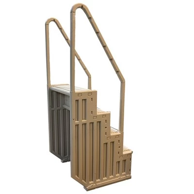 Easily climb in and out of your above-ground pool with the Confer STEP-1 4-Step Pool Entry Stairs. These pool steps help you ease your way into your pool and are super simple to install.This pool staircase is made for above-ground pools with flat bottoms. The whole unit snaps together for simple assembly. You’ll also get the mounting brackets needed to secure these pool steps to your pool or deck. The pool steps can support up to 400 pounds.Attractive and functional, these pool stairs feature 4 steps and 2 sloped handrails. Each pool step is large and flat with 270 square inches of foot space. Each step measures 10 inches deep, 27 inches wide, and 11 inches high. Overall, the above-ground pool stair system measures 32 inches deep, 31 inches wide, and 47 inches to the top step or 85 inches to the top of the handrail.