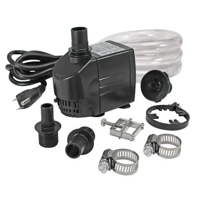 Includes submersible, energy-efficient, magnetic drive re-circulating pump with a 15 ft. grounded power cord, 4 ft. of vinyl tubing, connecting clamps, and a flow adjuster. Longer tubing is available for larger installations or deeper ponds, call for details. 1 year warranty.