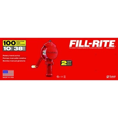 The Fill-Rite FR112CL Rotary Hand Pump is a smooth, reliable solution for low volume fuel transfer from drums and barrels. This manual rotary pump has the capability to pump up to 10 gallons per 100 revolutions and is ideal for situations when no power source is available. The Fill-Rite rotary pump is compatible with several different fuel types, including gasoline, diesel, heptane, kerosene, light oils, and mineral spirits. Ensure efficiency on the job site with this hand pump that is ideal for agriculture, construction, industrial, and automotive applications where low volume transfer is needed.This hand pump includes a built-in check valve that ensures flow only when you need it and a strainer to keep fluids free from large contaminants. Additionally, the pump comes with an anti-siphoning device, a hose with static wire, and a telescoping suction pipe.Refuel your equipment as quickly as possible so you can continue working efficiently. Extract and transfer your fuel wherever it needs to go with the Fill-Rite FR112CL Fuel Transfer Rotary Hand Pump.