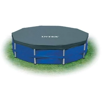 Spend more time swimming in your pool this summer and less time cleaning it by using this **Intex 15′ Pool Cover**. This Deluxe Intex 15′ Pool Cover is constructed of a high quality, durable 7 gauge (0.18mm), UV-resistant, PVC vinyl material, and it offers drain holes in the cover to allow water to pass through. Plus, its easy-to-use rope ties help ensure a secure fit across the perimeter of your pool. This Intex 15″ Pool Cover also works with Quick Set, Summer Escapes, Fast Set and Sand N Sun style pools that have the inflatable top ring.Item Weight: 15 lbs.Constructed of a high quality, durable 7 gauge (0.18mm) UV-resistant pvc vinyl materialThis above ground pool cover will helps keep your pool free of dirt, insects and debris when not in use.