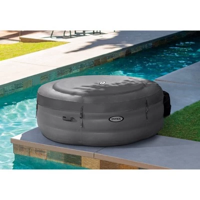 Let your worries bubble away as you unwind in the total relaxation of the Intex Simple Spa Inflatable Hot Tub with Filter Pump and Cover. SimpleSpa makes it super easy to own and enjoy a Spa. This inflatable hot tub gives you a great value with all the important features for enjoying a relaxing spa experience. 100 powerful bubble jets surrounding the interior provide a great and refreshing massage, while the adjustable heating system ensures the water temperature fits your personal preferences. This easy to inflate tub is protected by a strong exterior mesh hull, while the included ground cloth gives the bottom protection and minimizes heat loss. With the easy to replace filter cartridge and easy button controls, enjoying and maintaining the spa has never been simpler. Pamper yourself with the Intex Simple Spa Inflatable 4-Person Hot Tub Spa.