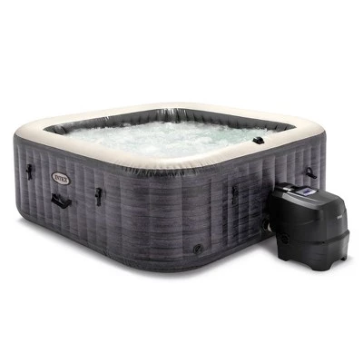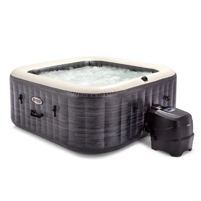 Let your worries bubble away as you unwind in the total relaxation of the Intex PureSpa Plus Portable Inflatable Hot Tub.The PureSpa provides relaxation at the touch of a button with its easy-to-use wireless, removable control panel and Intex Link Spa Management app to control the panel using your smart device. High-powered bubble jets surround the interior of the spa for a refreshing massage while the heating system on this inflatable spa adjusts to fit your personal temperature preference, allowing for a stress-free spa experience.This particular PureSpa also features 1 built-in color-changing LED light, headrests, and a built-in hard water treatment system to keep your spa time comfortable. Set up is easy and ready for water with FastFill inflation. Package includes tub, energy-efficient cover, electronic control unit with heater, air blower/filtration pump/ hard water system/saltwater sanitation, FastFill inflation system, 2 headrests, 1 LED light, thermal ground cloth, carry bag, 4 filter cartridges, and test strip.If you’ve always wanted a hot tub without permanently taking up space on your patio, this PureSpa Plus hot tub is a relaxation game-changer.