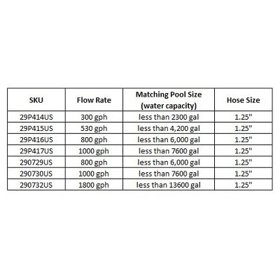 - Pump capacity of 300 GPH for pools up to 1,018 gallons