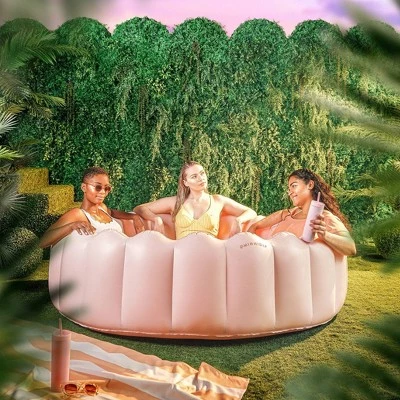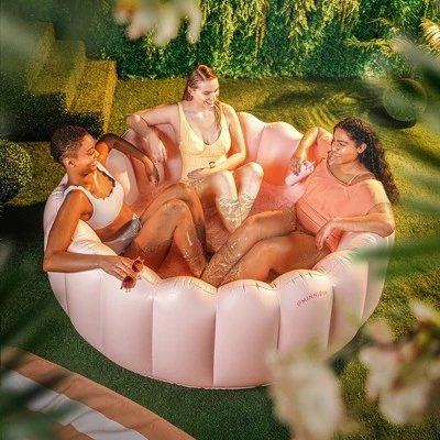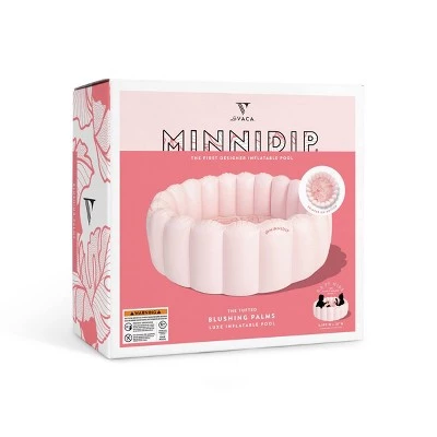 Designed in Chicago by Emily Vaca of La Vaca, the Tufted BLUSHING PALMS Minnidip Luxe Inflatable Pool is the pool party showstopper that promises pink skies ahead! At 5.5 feet wide and 21″ tall, and featuring Minnidip’s iconic and patented scallop tufts and signature palm leaf pattern in a vibrant coral, the Original “Adult Kiddie Pool” is big enough for a minnidipping pool party with your faves! Perfect for adults and children ages 6 and up. Dip Dip Hooray!