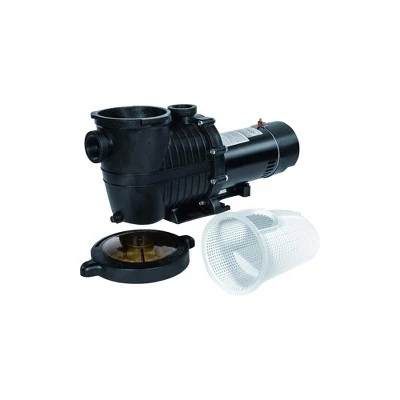 Designed for today’s demanding installations. This high-performance 0.75 HP medium head pump has been engineered for durability and quiet performance with the economy in mind. Setting the standard for value, performance and excellence, this all-around, self-priming pump with large pump basket is ideally suited for all above-ground, on-ground and small in-ground pools. It comes with a high-efficiency motor, 100% recyclable environmentally friendly plastics, and carbon to ceramic sealing surfaces design that will make this the leading pump choice of all pool professionals. Provides excellent water flow to keep your pool water crystal clear!Product features:Rugged one-piece strainer housing molded of corrosion-proof reinforced thermoplastic for extra durability and long lifeHigh performance motor design for quieter, cooler and more energy-efficient operationSpecially constructed clear lid with locking ring design is easy to openLarge strainer basket is always locked in placeAmerican design mechanical seal using carbon to ceramic sealing surfacesStainless steel shaftHigh profile motor mounting baseSimple servicingSelf-primingSingle speed 0.75 horsepower motor115 volts, 60 hertz, 9.2 amps1.5″ suction and discharge portsDesigned and manufactured to meet all CSA and ETL requirements6 foot 3-prong grounded power cord