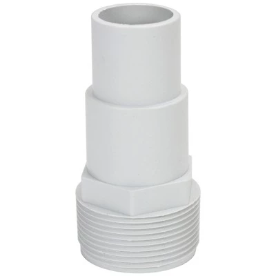 This hose adapter can be used to attach a vacuum hose or pool cleaner to threaded port. Backwashing your pool filter is essential for keeping your water clear and so this hose adapter is necessary. This type of accessory is very much crucial for a well-maintained pool.Product Features:Can also be used to connect a pool filter hose to a filter or pump or to connect your backwash hose to the filter valve Male threads fits 1.5″ female Features a stepped smooth opposite end that fits 1.25″ and 1.5″ hoses Recommended for use with a stainless steel hose clamp Dimensions: 4″ high x 1.75″ diameter Material(s): heavy duty plastic
