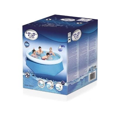 Stay cool this summer with our 8 foot inflatable easy set swimming pool. Good times are here with this spacious, fun, inflatable pool that is big enough for the whole family to enjoy. The comfortable blue and white wide sidewalls allow for ultimate lounging to make your summer experience unforgettable. This will become a quick, backyard favorite all summer long.Product Features: Inflatable top ring swimming poolColor: blue and whitePuncture resistant linerExtra strong Tri-Tech sidewalls made with 3 layers of PVC and mesh create a durable material ensuring higher resistance and stabilitySelf-supporting inflatable top ringEasy to set up, only takes 10 minutes of assemblySimply inflate the upper ring and the pool will rise as it’s filled with waterFeatures a built-in drain valveCompact storage easy deflationIncludes pool filter pumpThe filter pump will keep your pool clean from debris by having a flow rate of 330 gallons per hourAir release valve for air trapped inside filter chamberFor outdoor use onlySuitable for ages 6 and upCover and ladder are not includedDimensions: 26″ high x 8′ diameterMaterial(s): PVC