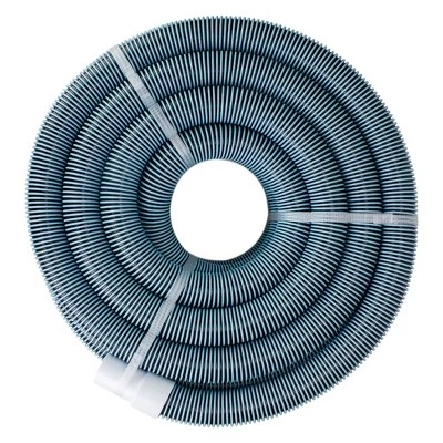 This hose, designed for water disposal during vacuum cleaning, holds up to extreme weather conditions. Vacuuming your pool walls keeps your water clear making this hose essential, especially during pool opening. Each hose rolls up neatly for storage and fits most standard vacuum heads.Product Features:Blue swimming pool vacuum hoseComes with poly-welded EVA cuffsSwivel cuff for kink-free maneuverabilitySmooth spiral-wound design for flexibility and maximum flow rateSuperior tensile strength for crush-resistant operationEVA plastic offers heat resistance, humidity resistance and tear resistanceRecommended for outdoor use onlyDimensions: 50′ long x 1.5″ diameterMaterial(s): extruded EVA plastic