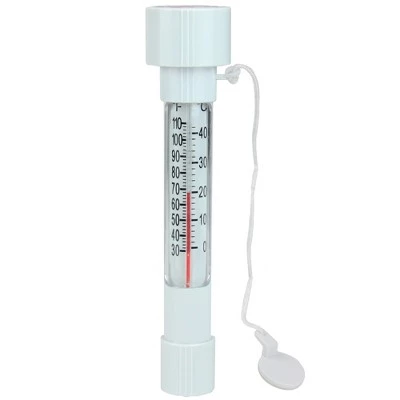Easily keep track of your pool or spa temperature with this standard, easy-to-read thermometer. The thermometer features accurate, reliable temperature readings. Bring fun to your pool or spa with this thermometer.Product Features: Easy to read scale with detachable buoyLarge easy to read dual scaleReads air or water temperature accuratelyComes ready to use on a nylon cordSuitable for all pool typesDimensions: 8.25″ highMaterial(s): plastic