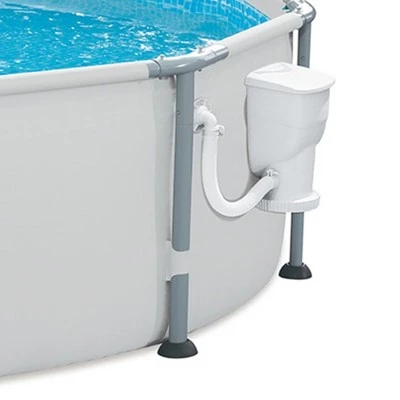 - 12-foot diameter metal frame pool with SFX600 SkimmerPlus filter pump