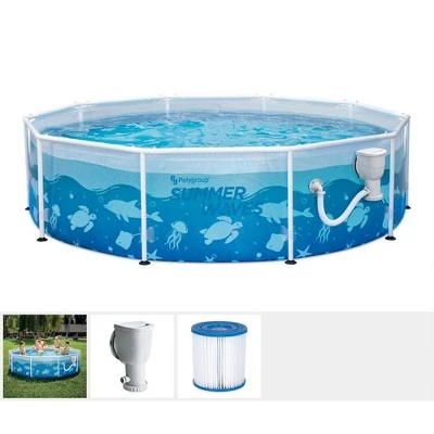 Stay cool this summer in the refreshing water of your Summer Waves 10 Foot Ocean Print Active Frame Pool. With an appealing ocean creatures print, kids will want to splash and play in this outdoor pool all summer long. This above-ground swimming pool includes a powerful filtration system with a built-in skimmer that keeps your pool clean and sparkling. With a durable 3-ply Toughmesh material, this outdoor swimming pool adds an extra flair to your beautiful backyard and will bring an exciting touch to your outdoor space. This active frame pool can comfortably accommodate 4 to 5 people, giving you the space to swim, play and float inside with your family and friends at the same time!Get ready for warm weather and endless water fun in your own backyard with the Summer Waves 10 Foot Ocean Print Active Frame Pool. Disclaimer: Please review your HOA rules and restrictions before purchasing this product. Not all housing agencies permit private above-ground pools.