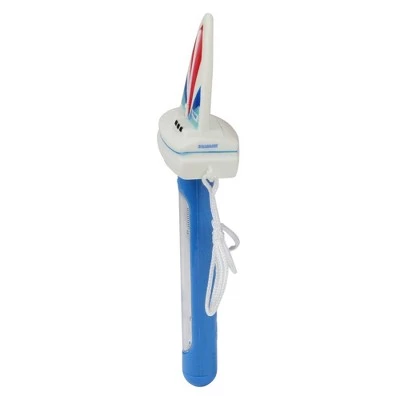 Use this floating sailboat thermometer to get an accurate temperature of your swimming pool or spa. The thermometer has an easy to read dual scale and a shatterproof case. The thermometer also comes equipped with a ready-to-hang nylon cord. So don’t ever worry about jumping into a cold pool again, just use this thermometer to check the temperature before getting in.FeaturesSailboat topper swimming pool and spa thermometerSoft top design Easy to read dual scale Features a magna-view window Accurately reads air or water temperature Shatter resistant case Comes ready-to-hang on a white nylon cord Dimensions: 9.5″H x 3.5″W x 1.5″D Material(s): plastic