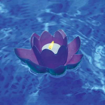This floating pool candlelight is a great way to add a little flair and style to your pool or spa. Light up the candle and relax in its warm ambient glow. This floating luminary is going to be a perfect addition to your outdoor living space.Product Features:Floating blooming flower candlelightThe flower is blue in colorCeramic candle holder placed in the middle of the flowerHolds a real wax tea light candle (Candle is included)Designed for both swimming pool and spaRecommended to use with a skimmer guard for maximum safetyWarning: never run filter with a lit candle in the poolWarning: never leave lit candle unattended; extinguish after useWarning: keep out of reach of childrenDimensions: 4″ high x 7.5″ wideMaterial(s): plastic/ceramic/wax