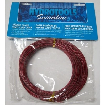 This vinyl clad steel cable makes winterizing your above ground pool easier. Secures your winter cover protecting it from wind damage. This winter cover is essential for an organized pool.Features:Fits round pools up to 30 feet in diameter or oval pools up to 30 feet in lengthPulls tight aboveground winter pool coverCan be used with SWIM 1001 cable winch – not includedDimensions: 100′ long x 0.10″ wideMaterial(s): steel/vinyl