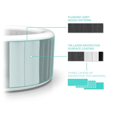 Relax and keep warm in cold weather with the Atlantic 2 to 4 Person Inflatable Hot Tub from Wave.This luxurious hot tub is an ideal way to relax with family and friends in the comfort of your own home. A control panel allows you to adjust the 105 massaging air jets and the temperature of the water, up to 104-degrees Fahrenheit. With a timeless design, this graywood hot tub will complement any backyard space for you to relax at the end of the day. This tub includes a filter, spa cover, inflation hose, and groundsheet, so this inflatable spa can be ready to use right out of the box with no additional tools required. Overall, this relaxing hot tub measures 65 inches long, 65 inches wide, and 27.6 inches tall to fit right into any outdoor space in your home.Create a relaxing space in your yard with the Atlantic 2 to 4 Person Inflatable Hot Tub from Wave.
